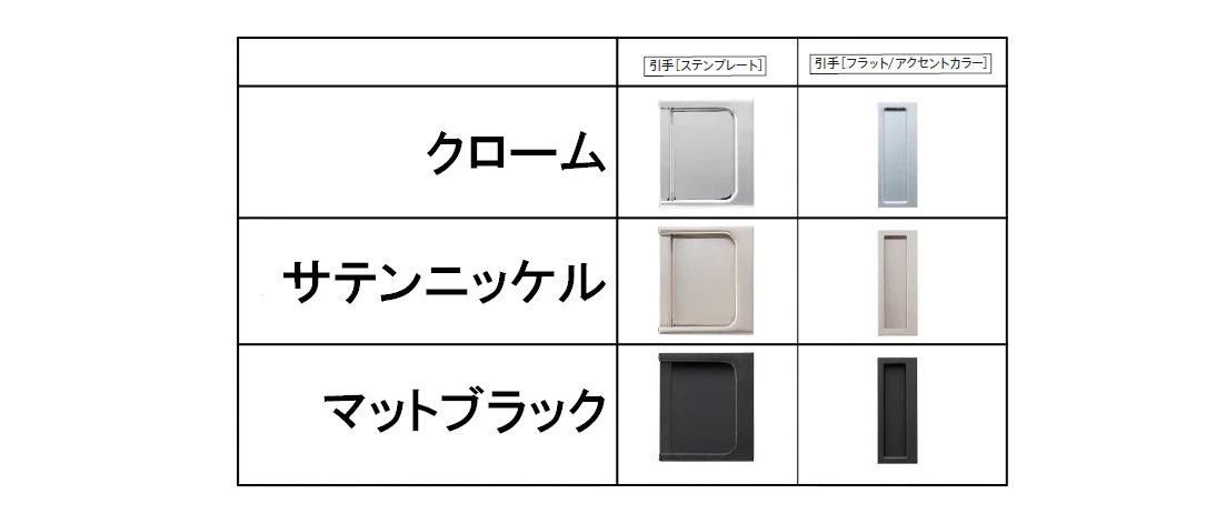 ラフィーノでは3色の金物をご用意しています。