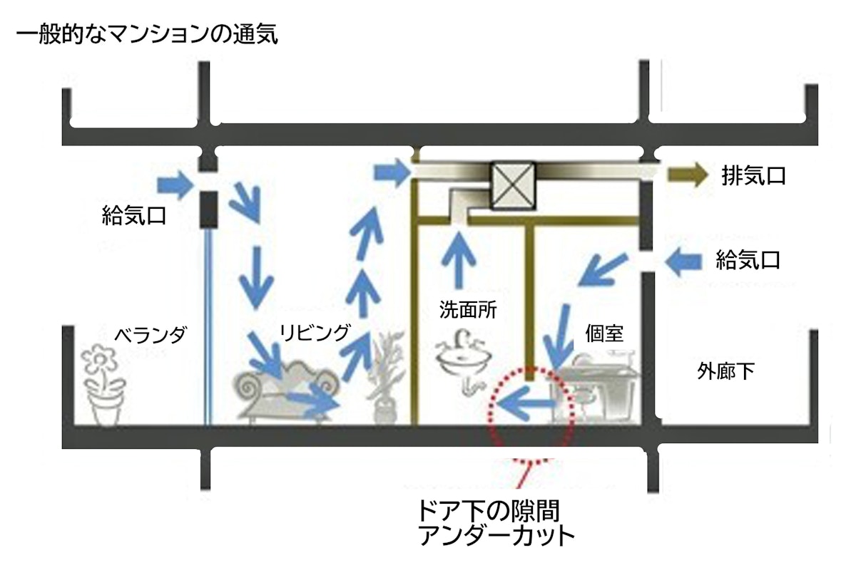 快適な環境の維持には、ドア下の隙間・アンダーカットのように、空気の通り道が必要になります。